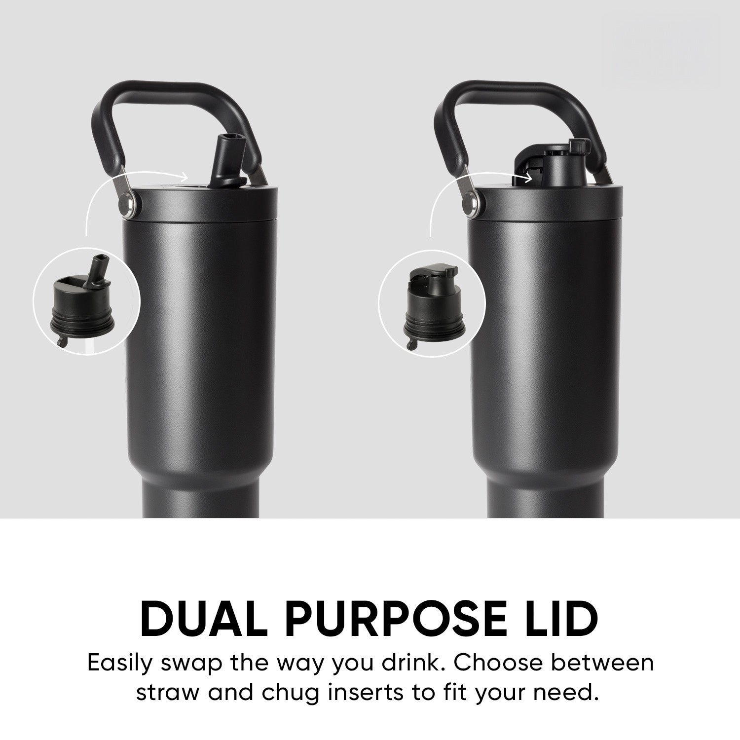 Multi-Use Leakproof Lid: Featuring two interchangeable leakproof lid pieces, you can choose your preferred sipping method - straw or chug - and easily swap out the sipping component within the lid at any time.